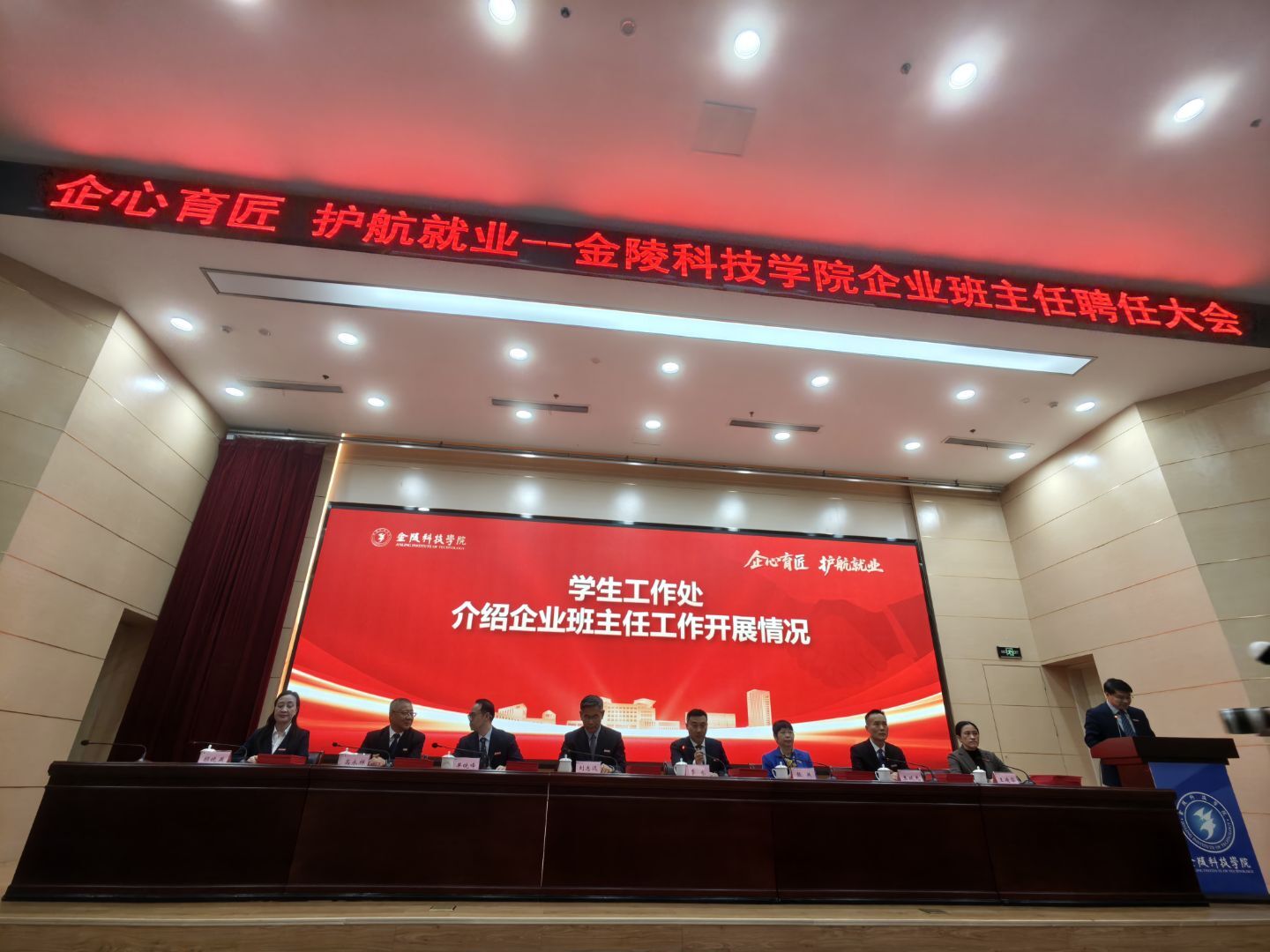 2025年11月26日,金陵科技学院企业班主任聘任大会在金陵科技学院科技楼报告厅举行。江苏z6com尊龙凯时 科技(集团)股份有限公司唐佩、徐敏博、罗涛、孙文雅同志受聘金陵科技学院软件学院企业班主任,并随后在学院组织下,参观金陵科技学院科创空间,参加学院研讨会。